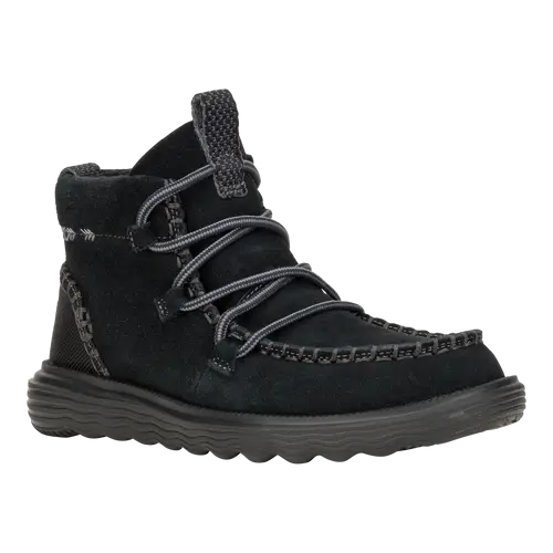 The Reyes Suede checks all the boxes: comfortable, cozy and cool toned colorways. Featuring a lace up front with easy-on and off thanks to our classic stretch lace system and dual pull-on tabs. Same go-to lightweight HEYDUDE™ construction with a suede upper and flattering mid height. This is the moc of the season.