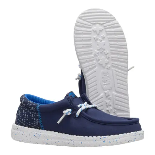 Easy to wear and effortlessly authentic, these Wally Funk shoes for kids bring the laid-back expression; kids just need to bring their feet. Made from twill with decorative woven fabric on the heel, these shoes are famous for their easy, step-in design and stretchy laces that don’t need tying.
