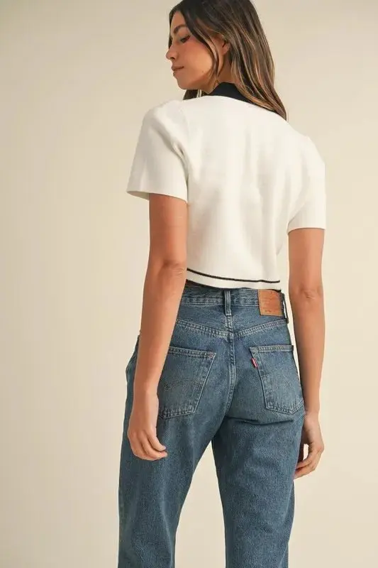 Button Down Contrast Collared Knit Cardigan